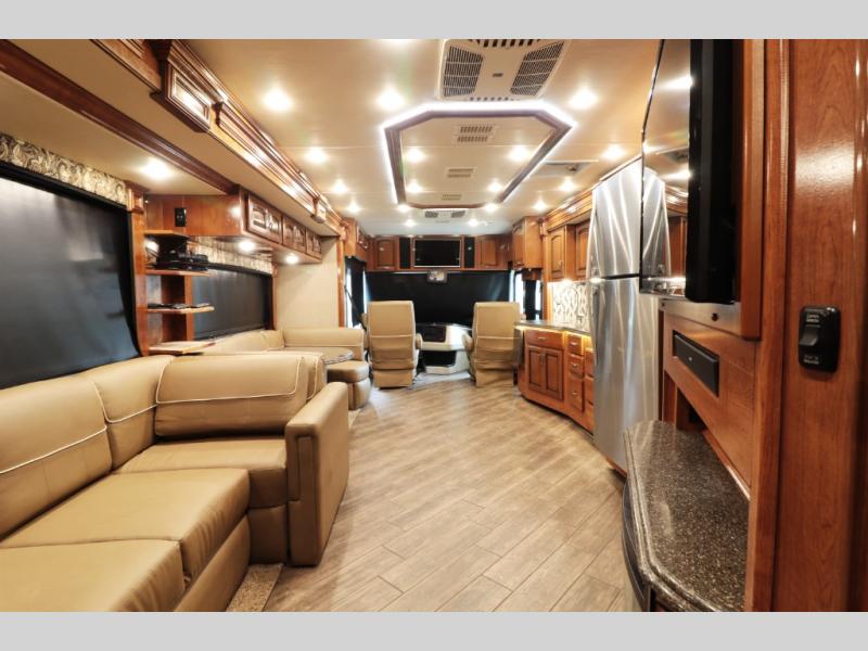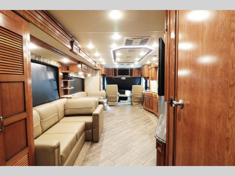 First-time buyers will appreciate that the 38-foot length (approx. 38' 8 per spec) keeps the rig manageable on travel routes and at RV parks, yet gives full luxury features.