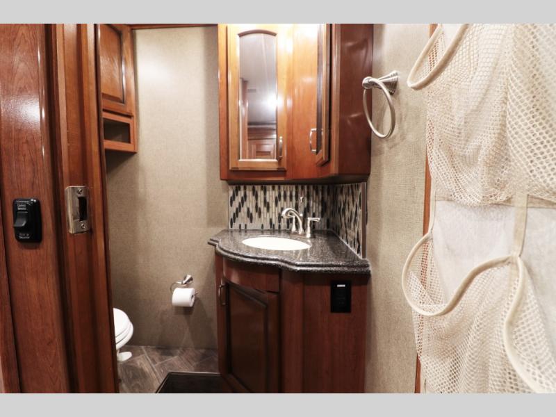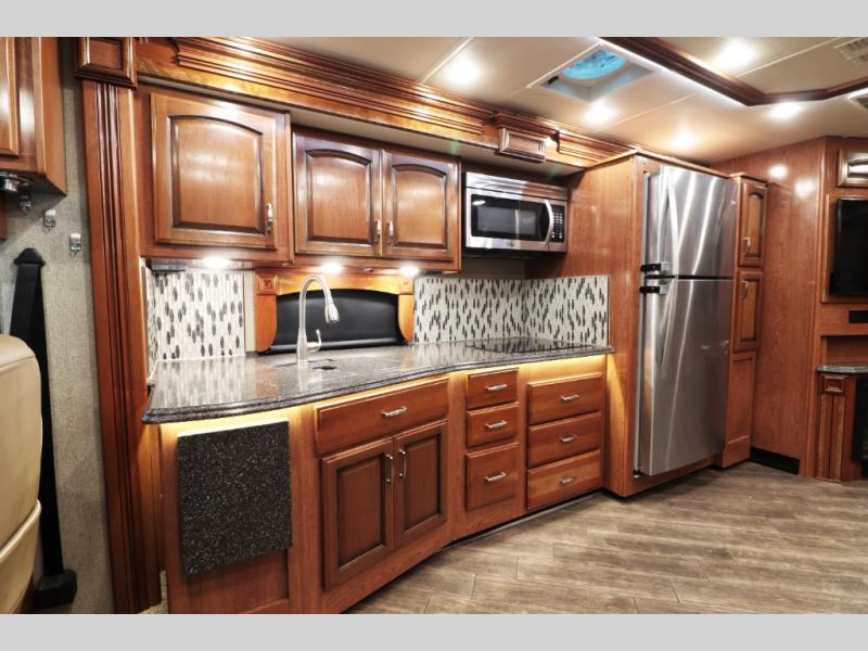 Experience luxury travel in this 2018 Holiday Rambler Endeavor XE 38K — featuring a Cummins diesel engine, full-body paint, 1.5 baths, king bed, and residential kitchen!