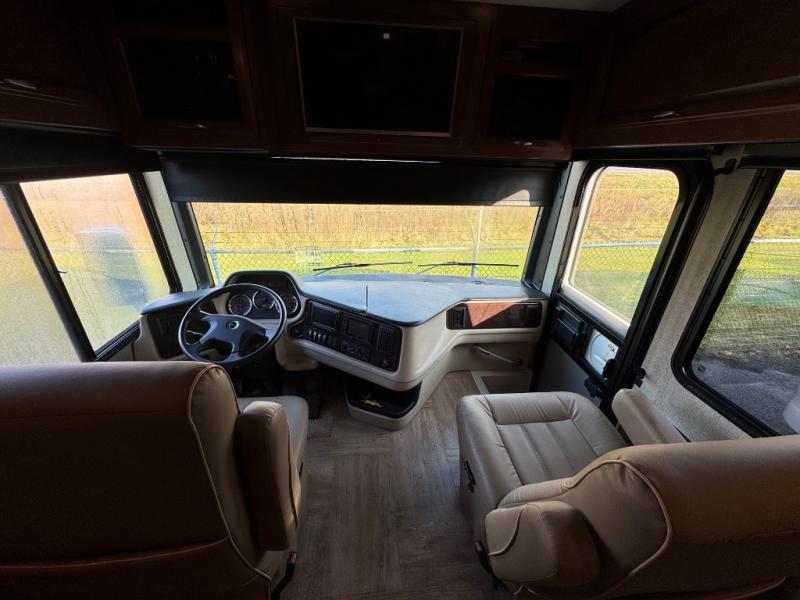 Come load up your family and set out to new adventures with this Navigator 38F class A motor home. As you enter this model you will notice all of the space throughout with the quad slide outs. In the living area there is an L-sofa where you can entertain a few guests plus you will find a lounge chairs, a 49" LED TV and an electric fireplace. You can enter the bathroom from either the hallway or from the bedroom. Here you will find two sinks which makes it even easier to get ready for the day. The rear bedroom features a king Serenity Series bed, a 43" LED TV, a full length closet, plus a stackable washer/dryer, and so much more!