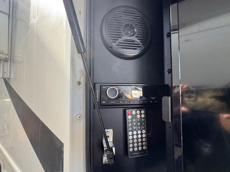 Once you are parked you can create a bit of outdoor living space with the 17' awning provided. Here you can enjoy protection from the elements, as well as the outdoor entertainment center and TV, plus so much more!