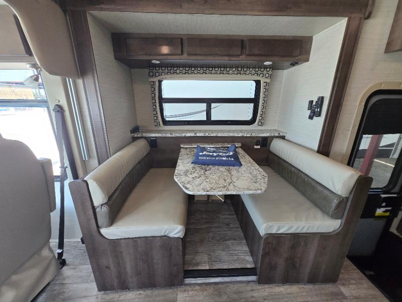 Above the cab seats in front there is a drop-down bunk option you can choose. This is great for children, or an adult. Beneath it notice the cockpit table that is perfect for enjoying your morning coffee or a snack even while you are on the move.