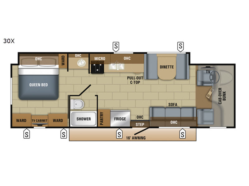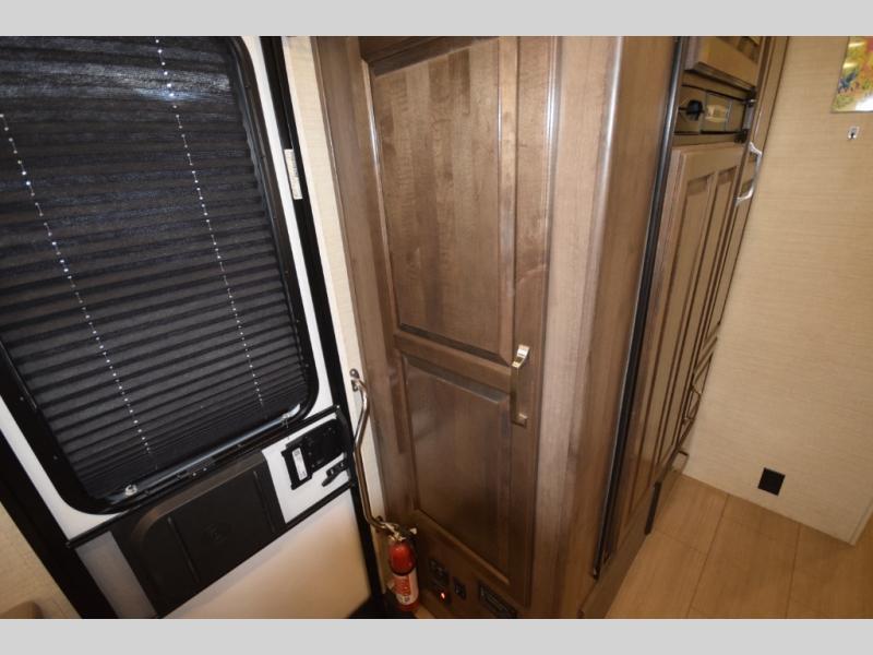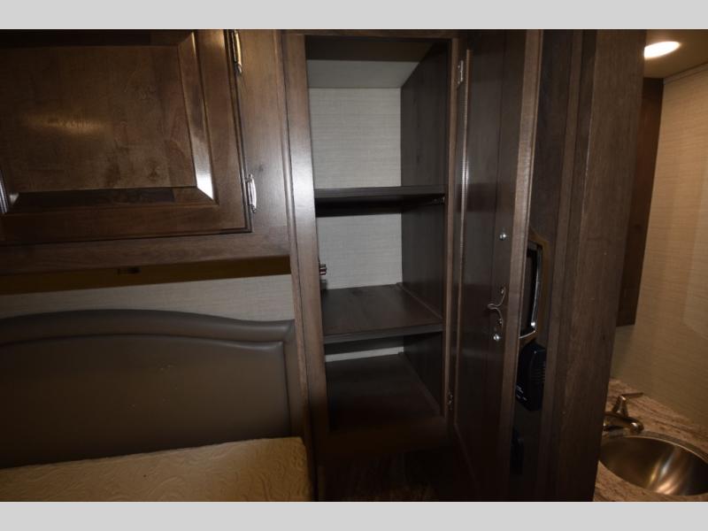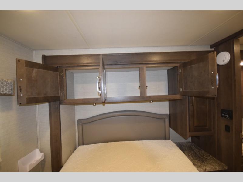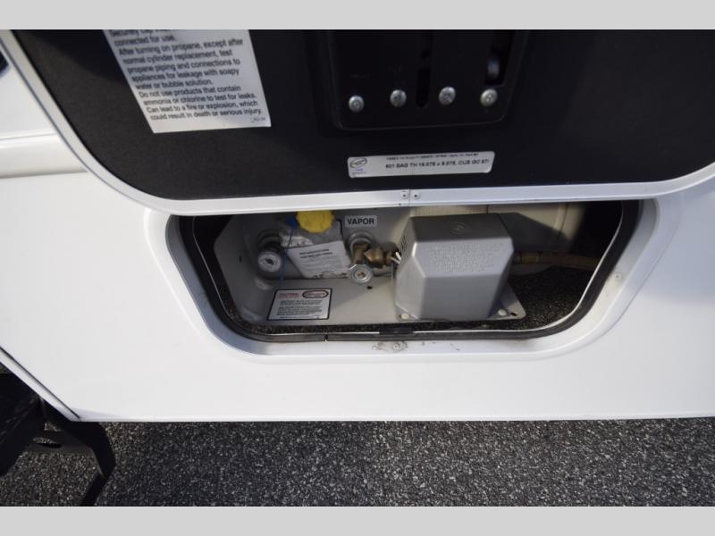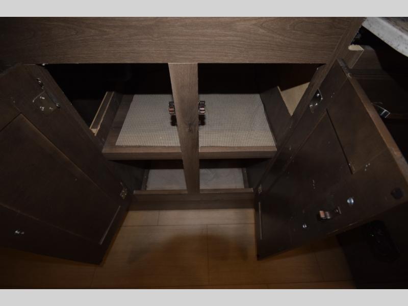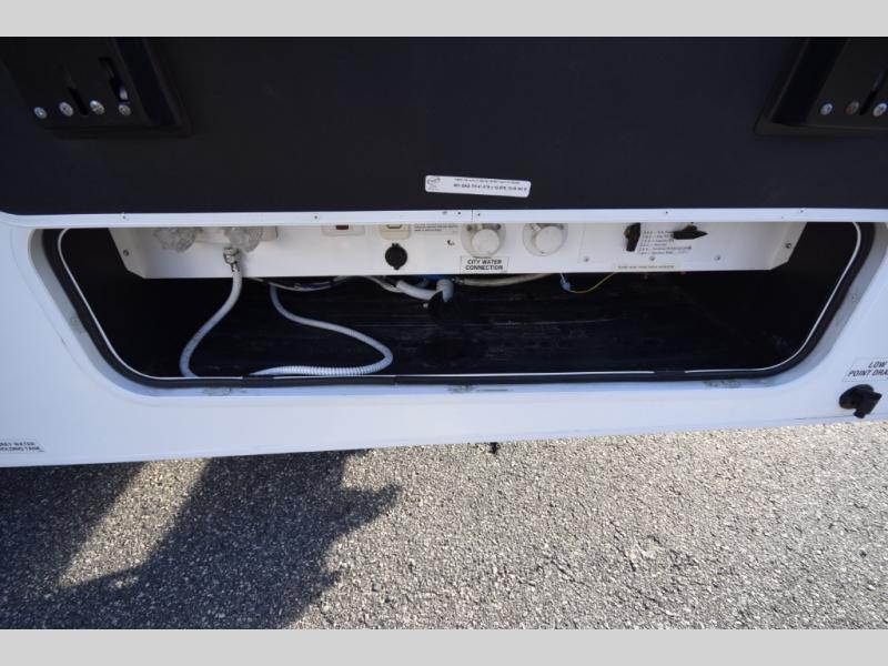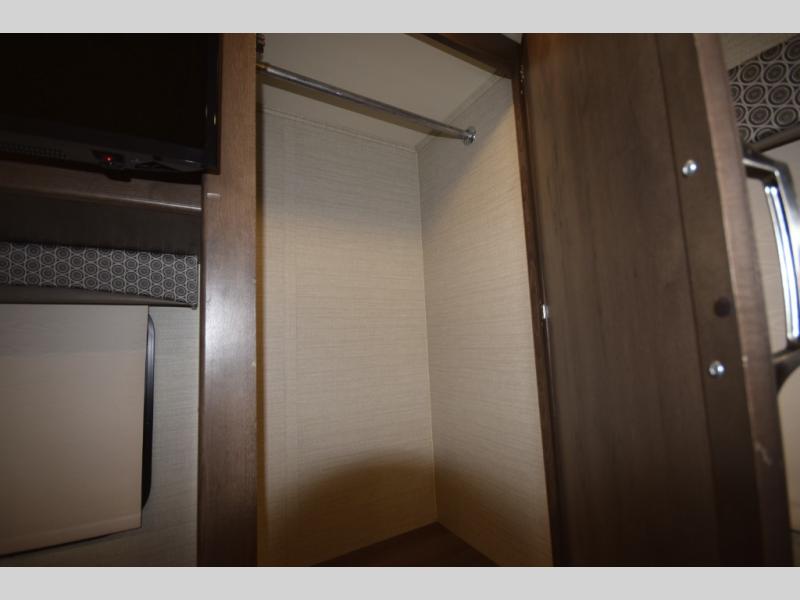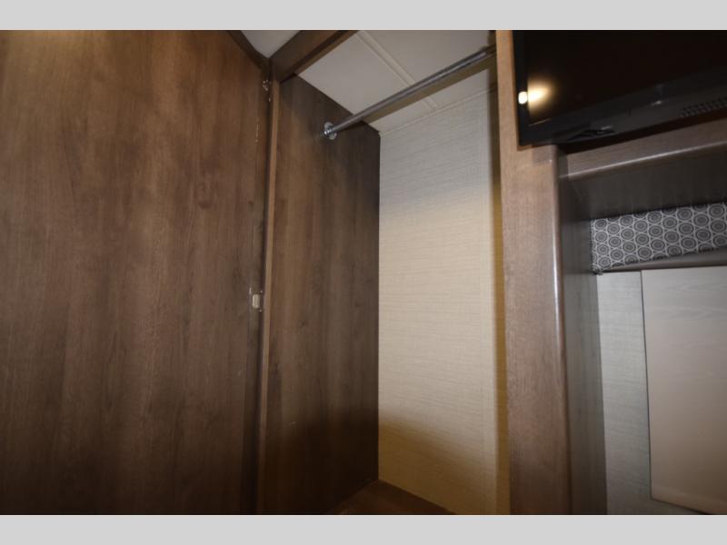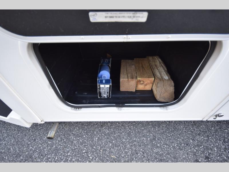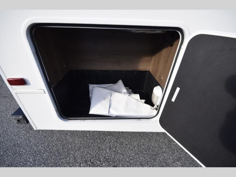 After a day of adventure, unwind in the private bedroom featuring a walk-around queen bed and a 24" LED TV for late-night relaxation. There’s abundant interior storage for all your essentials, while six exterior compartments offer plenty of room for outdoor gear, chairs, and adventure toys. Extend the 16-foot awning to create a shaded outdoor lounge area and enjoy the perfect campsite setup.