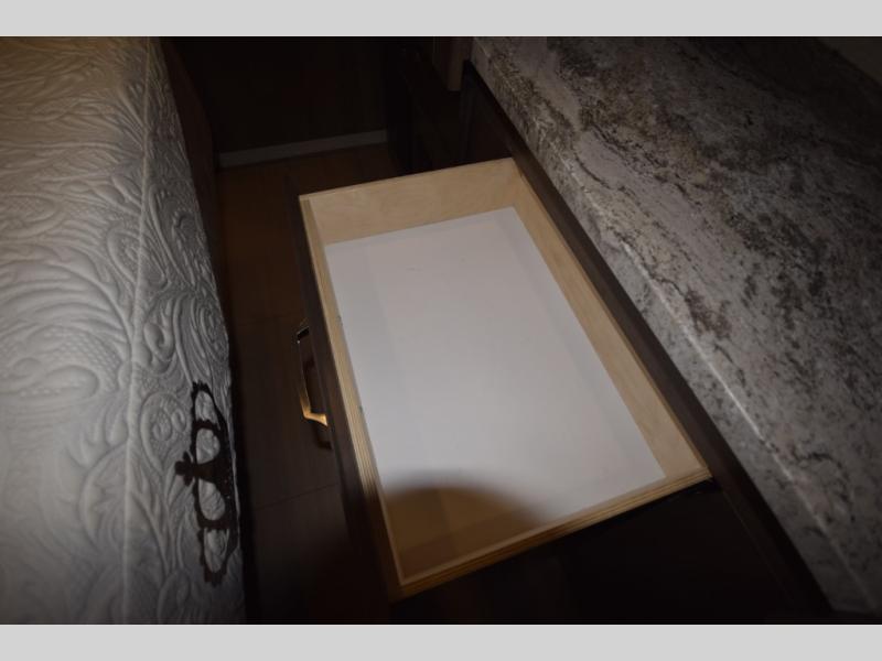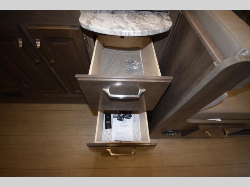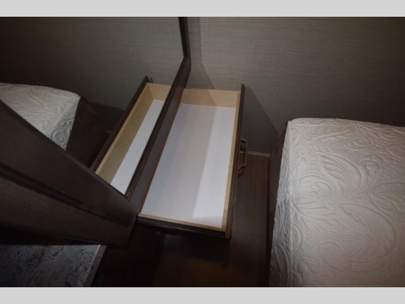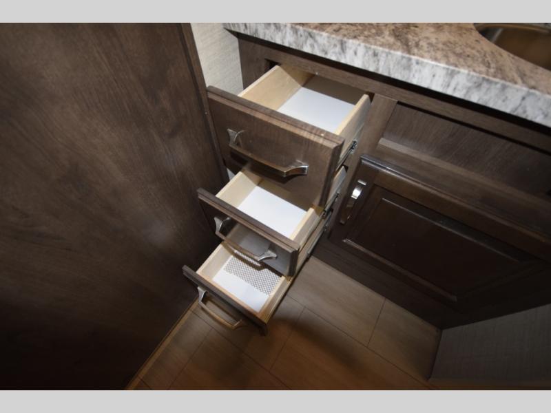 From its fiberglass exterior with seamless front cap to the one-piece fiberglass roof, the Greyhawk is engineered for durability and style. Inside, vinyl flooring, LED lighting, and ball-bearing drawer guides deliver residential quality and easy maintenance, ensuring every journey feels like home.