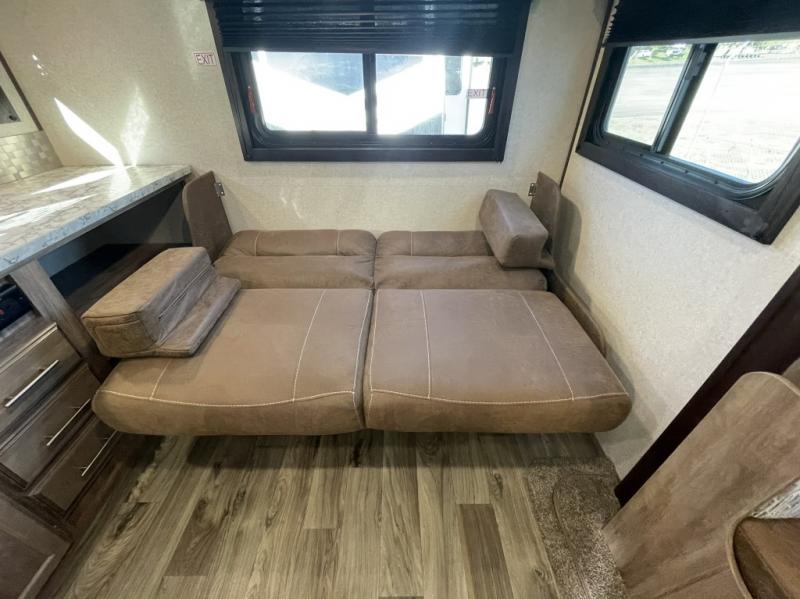 Booth dinette and sofa offer added sleeping options and seating