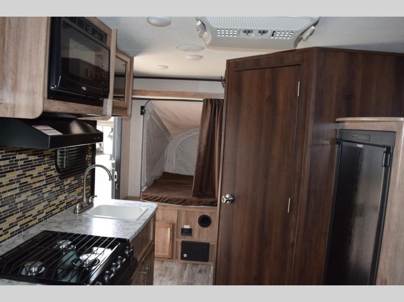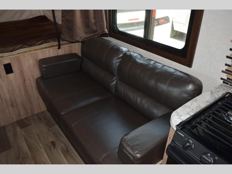 For any camping trip, you will want this Jayco Jay Feather expandable X17Z in tow! This model is lightweight and easy to pull behind most vehicles. You can easily sleep seven people with the front and rear tent beds plus there is a dinette and sofa that can accommodate a weary camper! With the five year warranty on the Jayco DuraTek water-repellent, scratch resistant vinyl tent material with zipper windows your expandable can withstand just about any camping weather conditions! Meal prep is not a problem with the three burner range, refrigerator, and sink. Outside you will find a 10' power awning plus exterior storage and more!