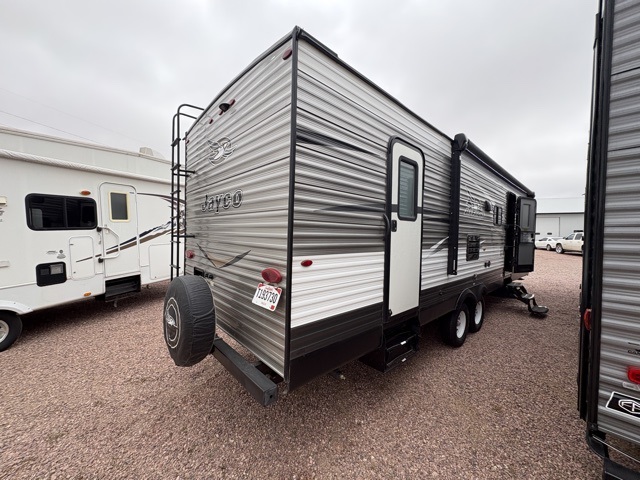 With any Jayco Jay Flight travel trailer you will get solid construction from the fully integrated A-frame, the l-class cambered structural steel l-beams, and the Magnum Truss roof system with seamless DiFlex II material. The 30" x 72" main entrance door, the entrance and baggage doors are all keyed alike, and the radial tires offer safety and security you will want every where you travel and setup. It's time to find out what else the Jay Flight has to offer that you can't travel without. Choose your favorite model today!