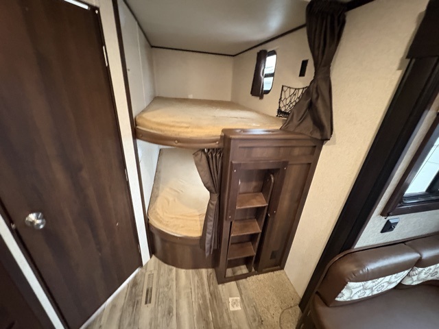 If family camping is all you think about then take a look at this Jay Flight 28BHBE travel trailer. You will enjoy a private front bedroom while the kids enjoy their own semi-private double size bunks when they decide to come inside after a fun day of exploring. Now you have your own bedding, all you need is full bath and kitchen amenities which you have in this Jay Flight. You will also appreciate all the conveniences such as dual entry into the trailer, and a bench seat by the main entry. Outdoor fun with inside comforts is what it is all about. Come see what else you will enjoy every time you take this trailer out of storage.