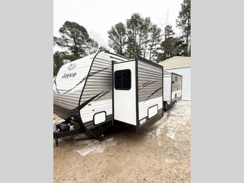 With any Jayco Jay Flight travel trailer you will get solid construction from the fully integrated A-frame, the l-class cambered structural steel l-beams, and the Magnum Truss roof system with seamless DiFlex II material. The 30" x 72" main entrance door, the entrance and baggage doors are all keyed alike, and the radial tires offer safety and security you will want every where you travel and setup. It's time to find out what else the Jay Flight has to offer that you can't travel without. Choose your favorite model today!