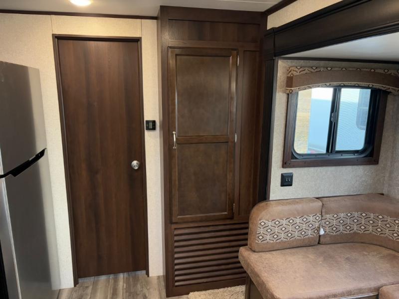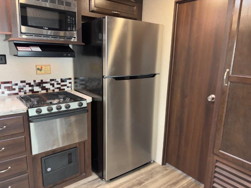 You will surely enjoy everything you find in this Jay Flight 38BHDS travel trailer. The owners will have their own master bedroom with a second entry door as they walk through the full bathroom from the living area. The kids will have a place to call their own in the front bunkhouse which includes a hamper and dinette. So who will sleep on the top bunk? The main living and kitchen area offers a patio door allowing more sunlight to come inside, plus provides an amazing view of the great outdoors. You can stock up on perishables thanks to the 18 cu. ft. refrigerator. Come see how this Jay Flight fits your family's lifestyle, plus you may choose a few options to make this the perfect trailer for you!