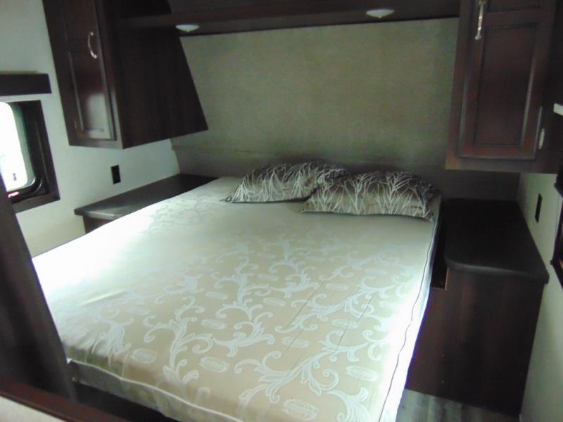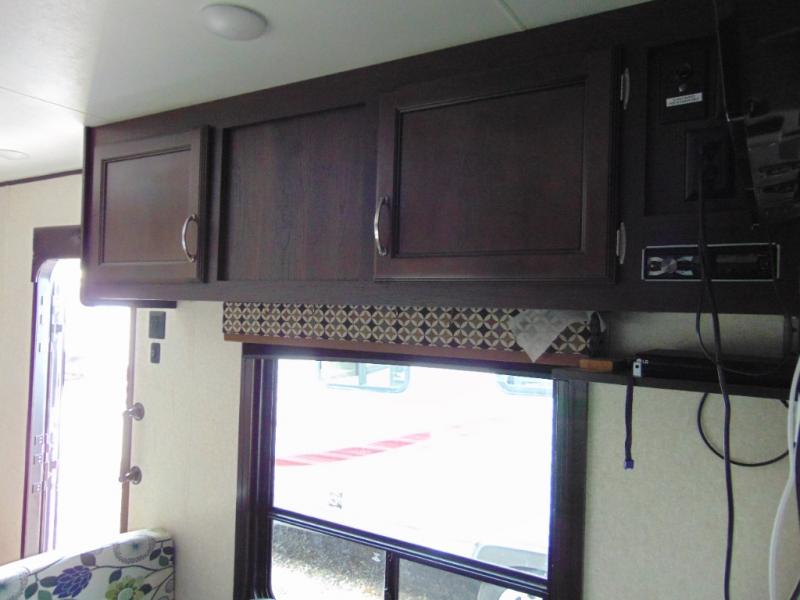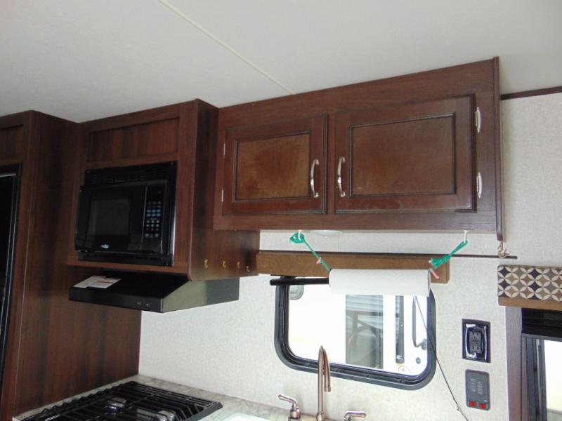 You will find plenty of overhead cabinets throughout the trailer as well as exterior storage, and much more!