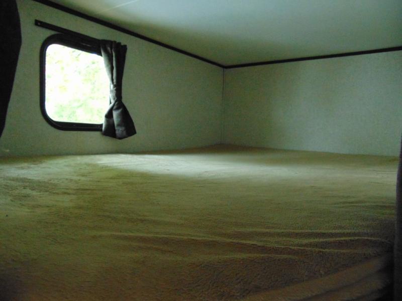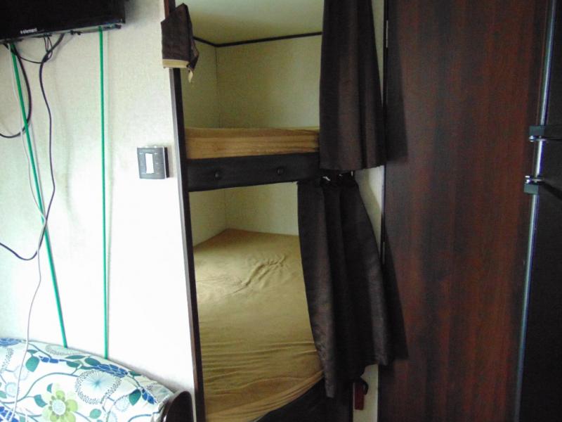 As you proceed toward the rear of the trailer, you will find a set of double bunk beds in the left corner of the travel trailer. With the double bunks you can sleep four people in this area!