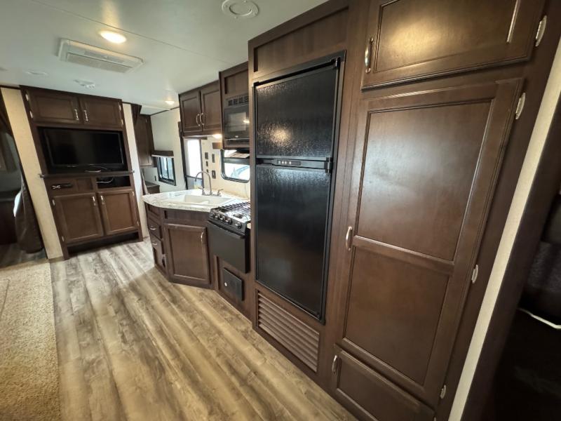For your outdoor camping gear you will find ample storage space in the front pass-through compartment. There is also additional storage beneath the bunks along the curbside. You will also appreciate the 16' awning for creating a bit of outdoor living space, plus so much more!