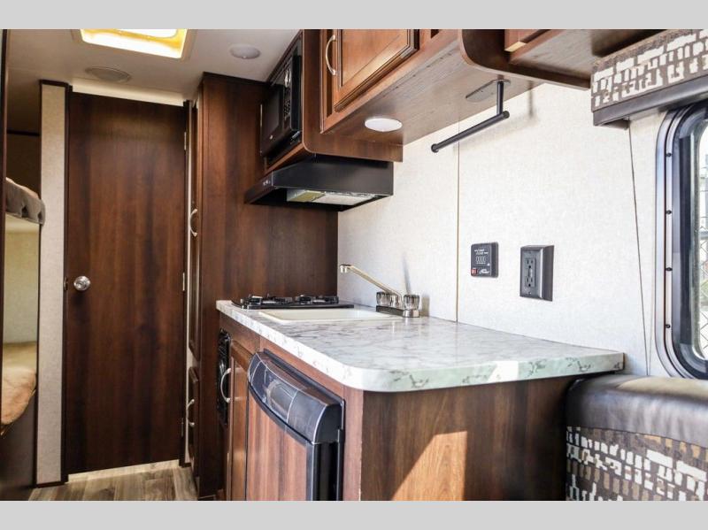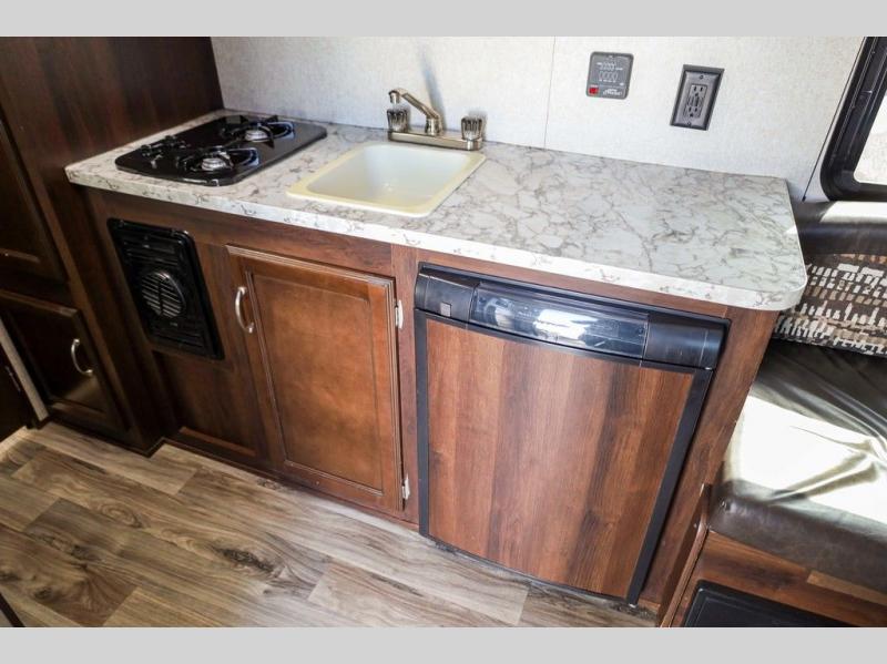 Your family will enjoy getting away for a weekend of outdoor fun in this Jay Flight SLX 7 travel trailer model 154BH. This unit provides all the comforts needed with sleeping for 3-4, kitchen amenities that allow you to cook inside even if it is rainy outside, and the rear corner private tub/shower and toilet area provides a way for everyone to keep clean and refreshed. The kids will love the bunk beds which are rated for 300 lbs. each so even an adult can use them if they like. Enjoy your meals inside seated at the front dinette while enjoying the stunning view of your surroundings through the large picture window. Hang out outdoors with an adequate 10' shady spot out under the power awning, and at night the LED lights can be turned on to make entertaining after dark a nice treat too!