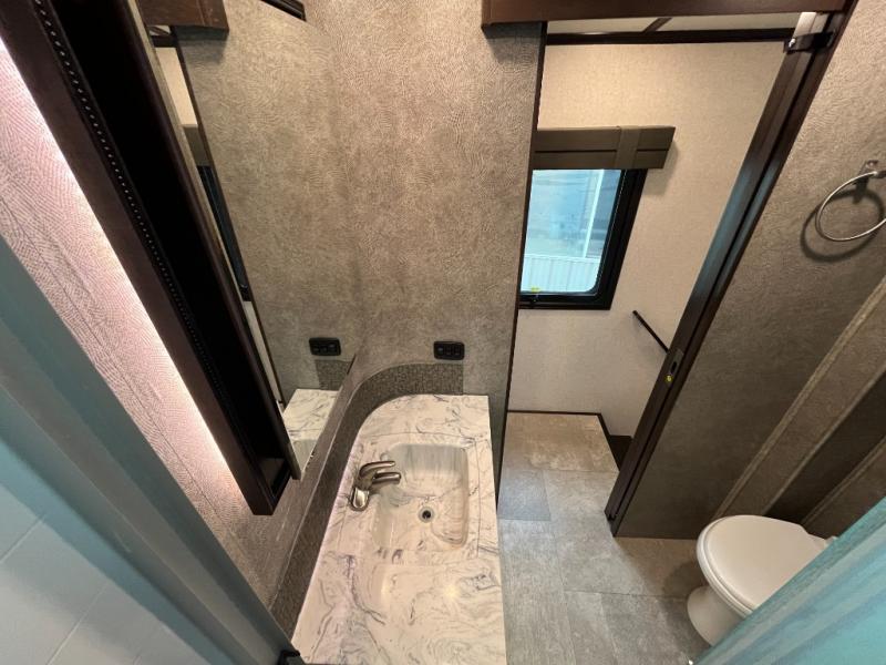 For any camping trip you will want a Jayco North Point fifth wheel. These models feature a Climate Shield which includes an enclosed, insulated, and heated underbelly, a high-BTU furnace, and Astrofoil in the roof and floors. Inside each model there is a Furrion Executive Chef gas cooktop, a stainless steel residential microwave, and USB charging centers in the living area, kitchen, and bedroom. The residential-grade wood-plank vinyl floor is easy to clean and will last for years to come. Now if that isn't enough to draw your attention, then you will like the mandatory North Point Luxury Package or the mandatory Customer Value Package which includes an arched interior ceiling, solid surface kitchen countertops, frameless G20 dark-tinted windows, slam-latch baggage doors and so much more!