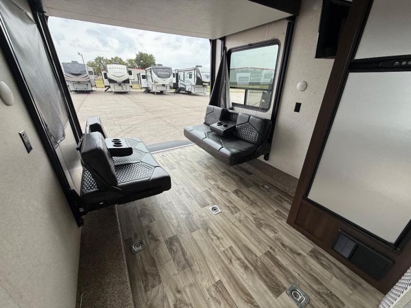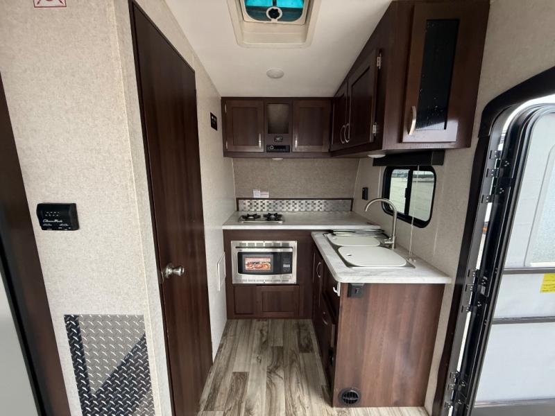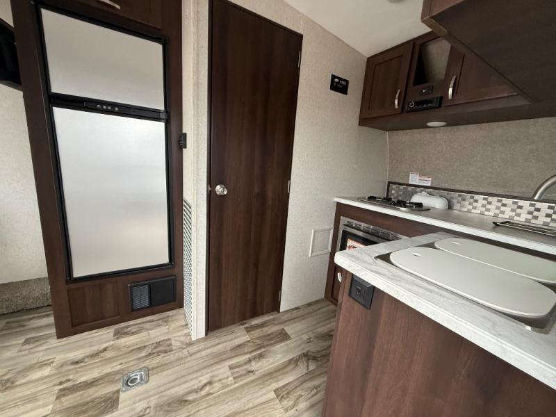 If you are looking for a toy hauler with a full bathroom and front kitchen layout, plus a 7' ramp with spring assist that makes it easy to load your toys, then you have found it in this Octane Super Lite toy hauler by Jayco. This model is great if you are looking for something lightweight and comact. Even though this unit is on the smaller side, you have plenty of room for all of your toys in the 11' 7" cargo area, and the electric queen-size bunk and convertible sofas enable you to sleep four people each evening.
