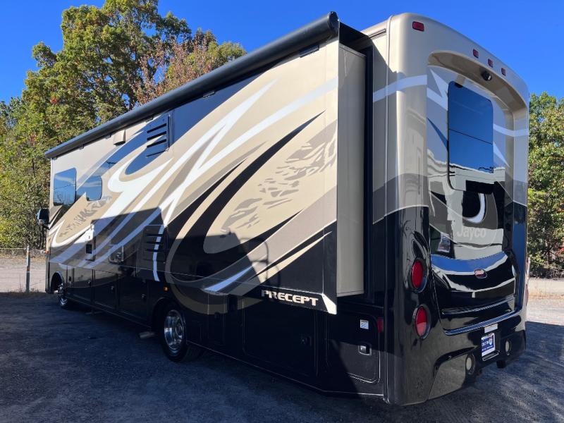 The Precept class A motorhome provides exclusive technology and premium ride and handling features for a luxurious home away from home experience on the open road. The JRide Plus feature allows for precise handling and stability for a safe ride anywhere you go. The automatic hydraulic leveling jacks, plus backup and sideview cameras allow for easy set up at your favorite destination. You will also appreciate the Jayco-exclusive Garmin infotainment system powered by Fusion, the Onan Marquis Gold Genset 5,500-watt generator with auto-gen start, and the water filtration system to name a few other standard features. You sure can't go wrong with any Precept model by Jayco that you find to fit your family's size and lifestyle, it's time to choose now!