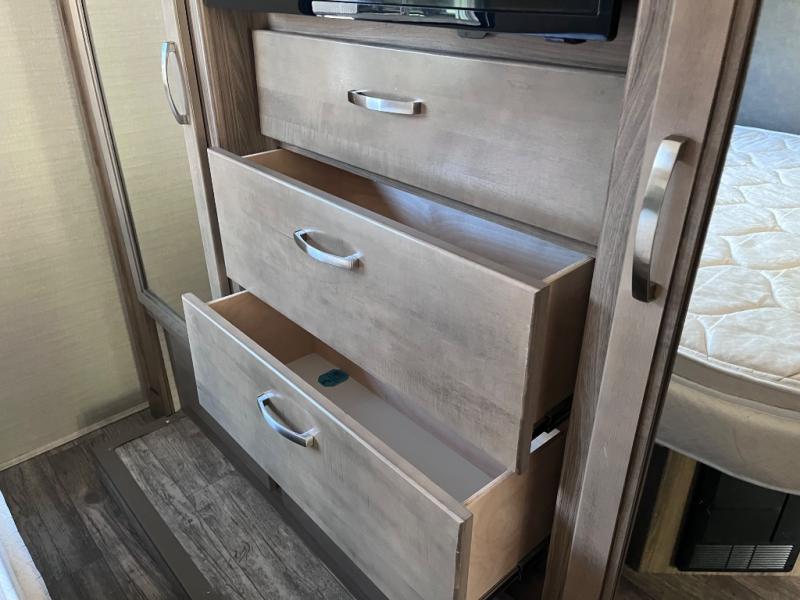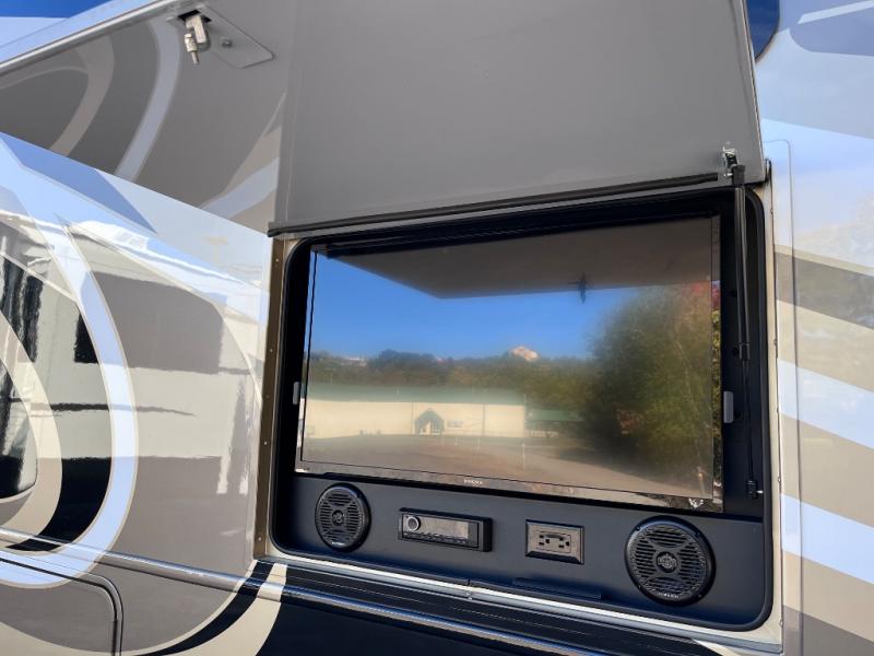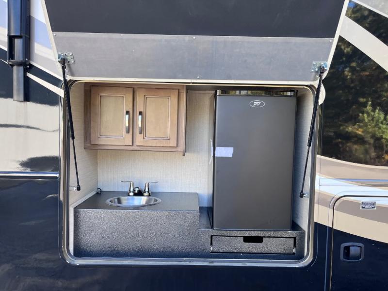 Luxury and comfort awaits you in this Jayco Precept class A gas motorhome model 29V. You will find lots of floor space thanks to the full wall slide out allowing you to move around the coach with ease. The convenience of the comfortable Dream dinette allows you to sit, dine, or even sleep at night since the dinette mechanism easily raises and lowers the tabletop. You can also choose to relax on the tri-fold sofa. And the king size bed gives you a space to unwind after a fun day of exploring or shopping. The outside entertainment center with an LED TV mounted on a swivel bracket, the single-disc DVD/FM radio, and the outside kitchen offer an additional cooking and living area when you prefer to be outdoors. There are additional features and options to choose from like the drop-down cab overhead bunk for more sleeping space, plus more!