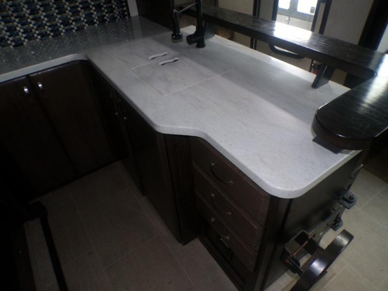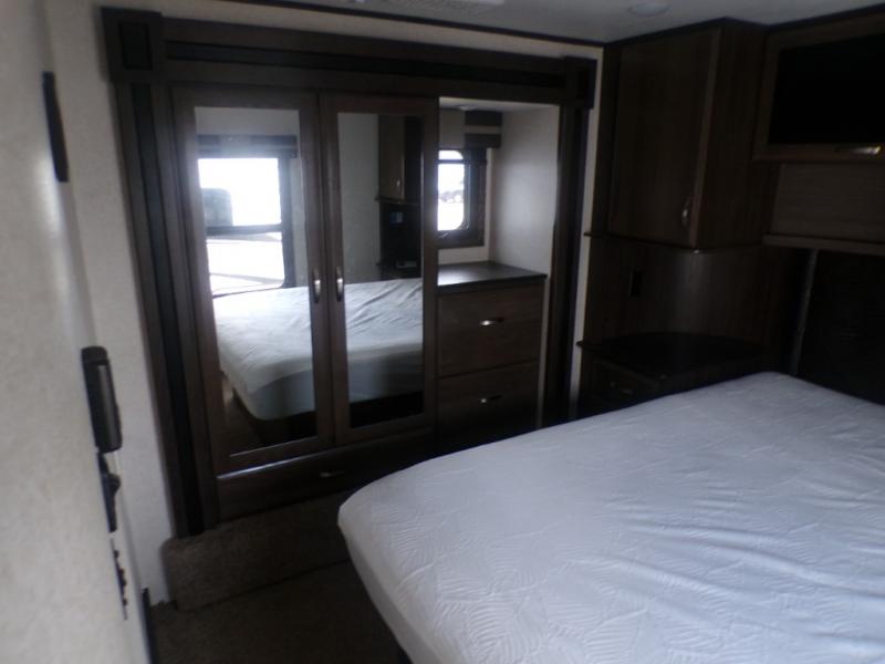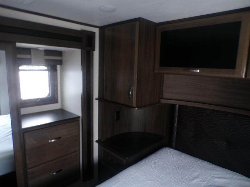 With any Seismic toy hauler fifth wheel you can enjoy real residential comforts with spacious living areas, LED lighting, and high-end furnishings. You will appreciate tons of storage throughout with quality cabinetry for all of your things. The ball-bearing drawer guides in the kitchen provide a 75 lb. capacity so you can easily stock all of your kitchen equipment with ease. You will also appreciate the stainless steel residential appliances and pop-up USB charging port, and a cozy bedroom space in every model where you can relax on a Jayco exclusive Simmons mattress. And, when it comes to the cargo area, you will enjoy a three seasons room featuring convertible sofas beneath an electric queen size bed, and a 2-inch block foam insulated garage floor. Tie downs will easily keep your cargo secure for the move. Jayco's Seismic toy haulers allow you to maintain a very active lifestyle with all the comforts of home! Come choose yours today!