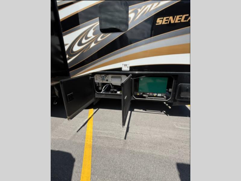 As you tour and sightsee, you'll realize just how valuable this Seneca Prestige Super C diesel motorhome truly is! First of all, there is both a full and half bathroom which is one of the most convenient features to have, and the 21-cubic foot residential refrigerator is also going to be an extremely useful feature because it will allow you to bring an enormous amount of food for your journey. The king bed slide in the master suite is going to be ultra relaxing, and there is a 32" LED TV directly across from the bed for a late-night movie. The huge slide in the main living area will provide you with some extra living space, and the countertop extension in the kitchen will provide you with some extra space for meal prep.