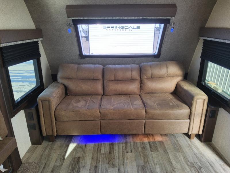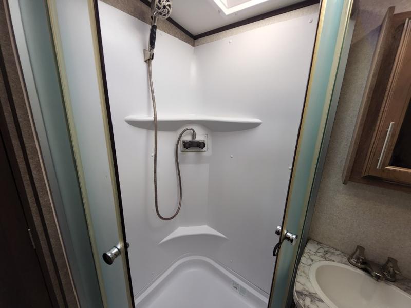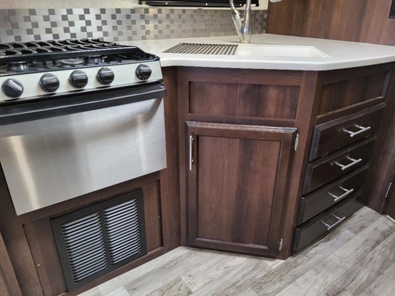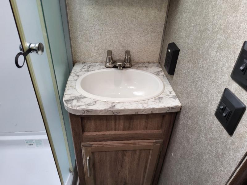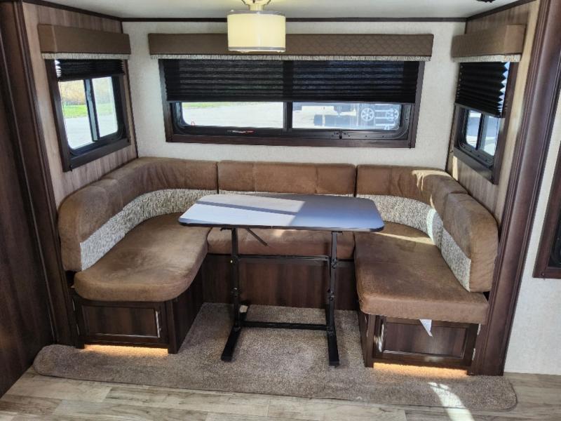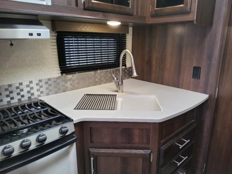 Nothing could be more reliable and comfortable than this White Hawk travel trailer because of the quality it has been built upon. Each amenity added into this trailer has both style and purpose, like the arched ceilings and stainless steel residential appliances. The two slides on this trailer allow you to have extra space for the Jayco-exclusive Simmons mattress and U-shaped booth dinette which give you the room that you need to sleep six people easily, and each morning the sunlight shining through the skylight in the large walk-through bathroom will revive you for the adventures ahead that day.