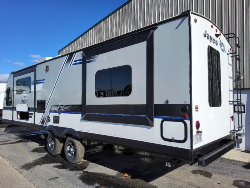 Jayco has made certain that you will stand out from the crowd while traveling in the White Hawk by adding their Magnum Truss Roof System which can withstand up to 4,500 pounds, fifty percent more than the competition. The American-made Goodyear tires with self-adjusting electric brakes are the perfect base to the sleek and aerodynamic exterior. On top of all of that, the entire trailer is backed by the Jayco 2-year limited warranty so that you can travel with confidence during every adventure you take.
