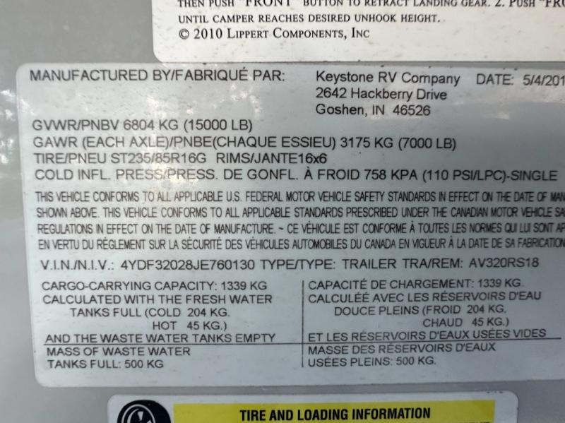 Used 2018 Keystone RV Avalanche 320RS Fifth Wheel