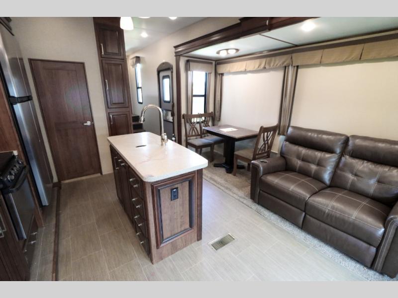 It's time to imagine how this Keystone Avalanche fifth wheel fits perfectly into your life style. Model 365MB offers you a master bedroom and bathroom with a king bed, plenty of storage including under the bed and in the chest, and quick access to the bathroom. The kids will be able to draw straws for the loft area or the extra room as their own. There is even a desk to complete school assignments or office work, whichever is needed. The wide open kitchen and living area allows plenty of campers to gather together to watch the 50" TV, play games, and stand around the kitchen island eating food and talking about their day. So if you are a couple that needs an extra office/den, or you are a family with kids that enjoy their own space, this Avalanche has you covered!