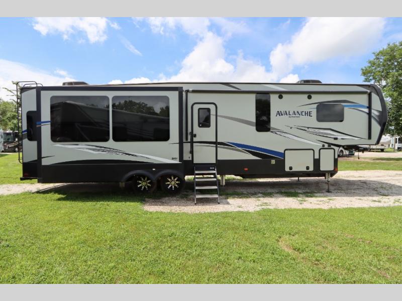 With any Keystone Avalanche model you will enjoy getting to your favorite destination with the turning radius of the MAX TURN high-gloss fiberglass front and rear cap including the aerodynamic design for less drag, and the Road Armor suspension. Once you have arrived to your spot the One Place Command Center is centrally located with operational switches and gauges to set up quickly. The one-touch electric awning with adjustable arms can provide protection from the sun and elements while loading your clothing, dishes, and gear into all the interior storage options throughout. Inside, the wide-body interior provides plenty of space to move around, the huge panoramic frameless windows offer a beautiful view, and there is much more! It's time to hook up your favorite model, and hit the road today in an Avalanche!