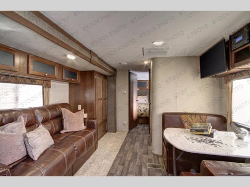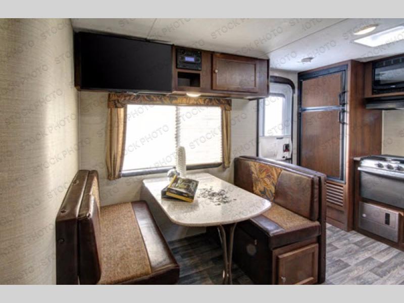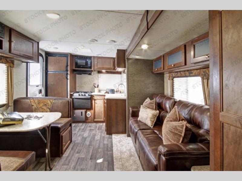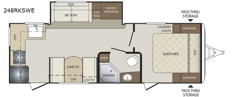 This single slide out Bullet 248RKS travel trailer features a rear kitchen with all of the appliances needed to prepare meals and snacks for your family while you are away from home. You can sit and relax at the 68" sofa and the dinette. Another great features is that both the dinette and sofa double as additional sleeping space at night. In the front bedroom there is a queen bed plus a laundry chute and two wardrobes. The front entry door also leads into the front bedroom. Outside enjoy plenty of storage room with the pass through storage and more!