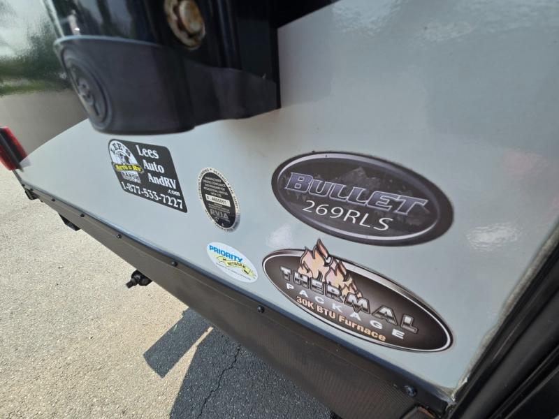 When your next camping trip is calling your name, answer the call with this single slide out Bullet 269RLS travel trailer. There are two entry doors so you can easily enter this trailer and be in the kitchen/living area or the front bedroom. Enjoy your time relaxing at the two lounge chairs, the 68" sofa, or the dinette. In the front bedroom you can get a good night's rest on the queen bed, plus you will find a convenient laundry chute.