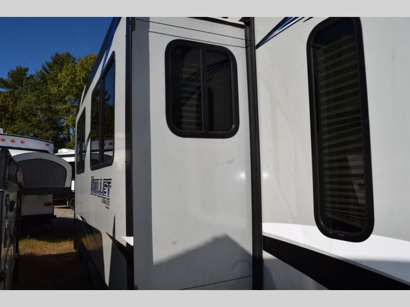 When your next camping trip is calling your name, answer the call with this single slide out Bullet 269RLS travel trailer. There are two entry doors so you can easily enter this trailer and be in the kitchen/living area or the front bedroom. Enjoy your time relaxing at the two lounge chairs, the 68" sofa, or the dinette. In the front bedroom you can get a good night's rest on the queen bed, plus you will find a convenient laundry chute.