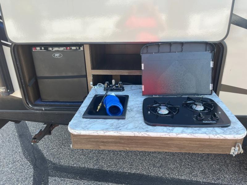 Come see just how fun and easy camping can be with this Bullet 277BHS travel trailer! You will find plenty of space inside thanks to the single slide out along the roadside. The front bedroom features a walk-around queen bed plus there are sliding doors on either side of the entertainment center. In the rear more sleeping space can be found at the double over double bed plus there is a ladder for easy access to the top bunk. The chef in the family can now enjoy more time outside while prepping meals at the outdoor kitchen and more!
