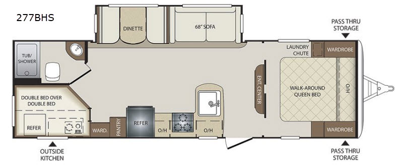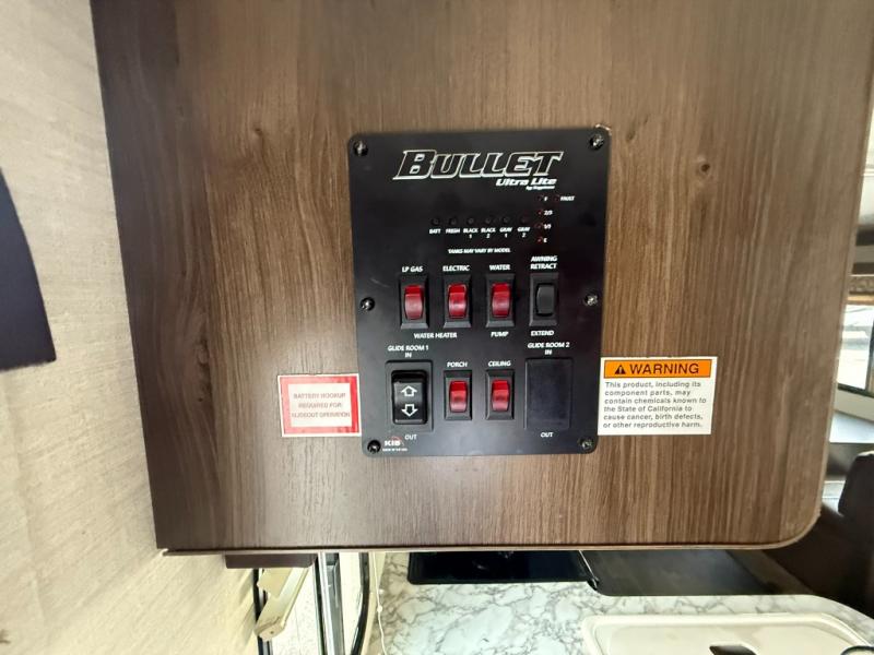 Come see just how fun and easy camping can be with this Bullet 277BHS travel trailer! You will find plenty of space inside thanks to the single slide out along the roadside. The front bedroom features a walk-around queen bed plus there are sliding doors on either side of the entertainment center. In the rear more sleeping space can be found at the double over double bed plus there is a ladder for easy access to the top bunk. The chef in the family can now enjoy more time outside while prepping meals at the outdoor kitchen and more!