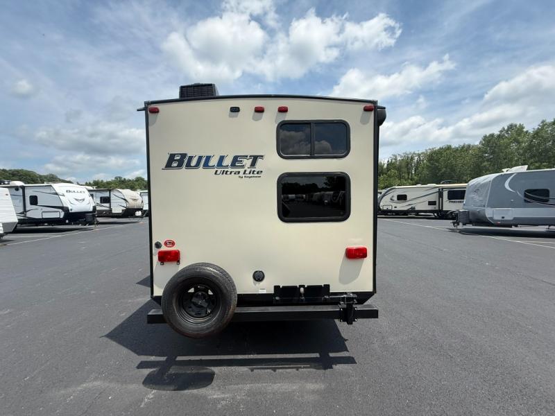 Get ready to embark on a camping trip of a lifetime with the Keystone Bullet travel trailers. These models are easy to tow behind most crossovers, cars, and trucks. The exterior is sleek and smooth and features aluminum framed front, rear, and side walls, a Darco moisture barrier, plus a one piece TPO roof. There is also a 1/4" ABS enclosed underbelly. Inside each model you will find residential style furniture, night shades in the living area, and LED lights. In the bedroom there is an upgraded foam mattress, mirrored wardrobes, under bed storage, plus full blackout window treatments. You will also enjoy the following packages: Exterior Camping Package, Interior Camping Package, and the Thermal Package.