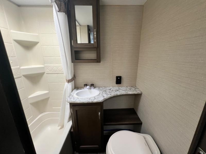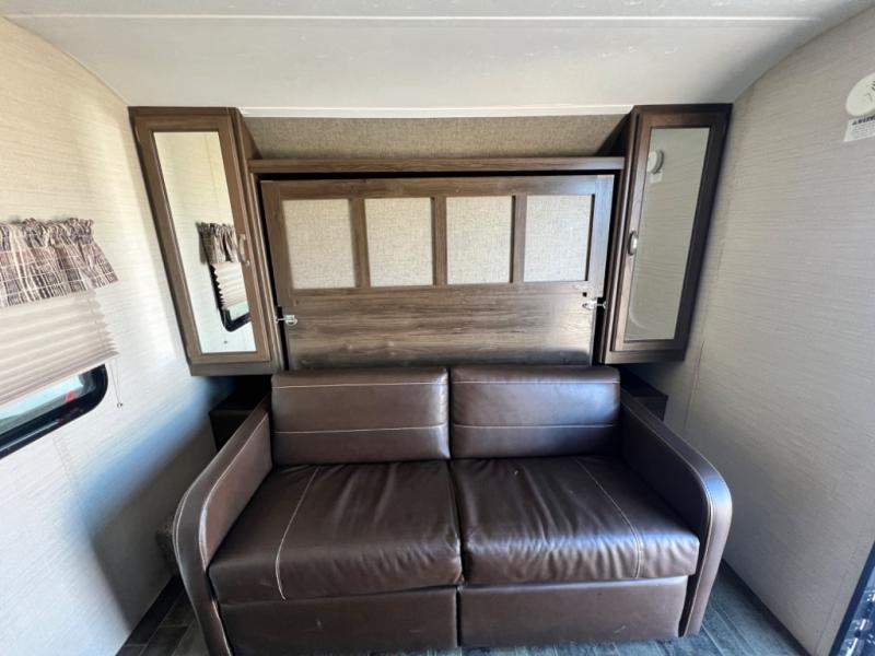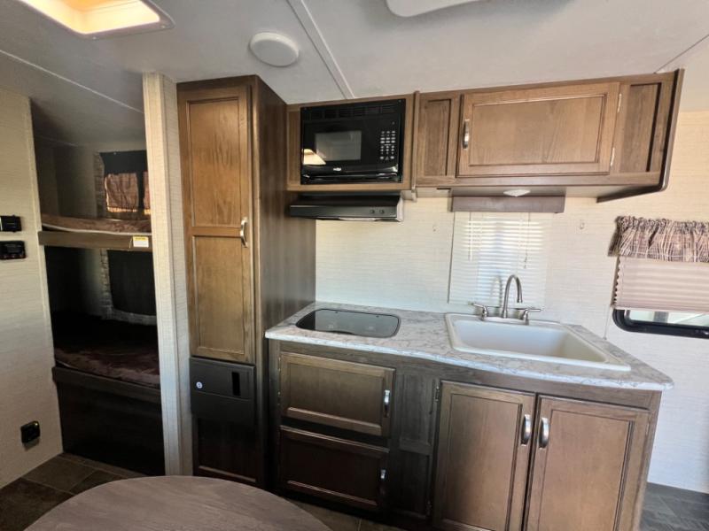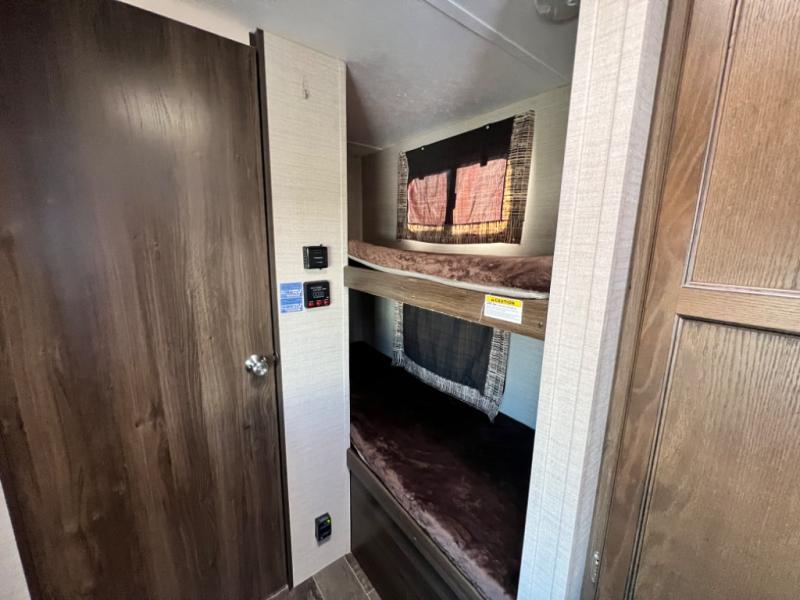 Imagine yourself in the living area while sitting on the sofa. Now imagine yourself sleeping on the Murphy bed while the kiddos are on the rear bunk beds. This convertible area up front allows you to enjoy all the space in the travel trailer exactly how you like it. This Keystone Bullet Crossfire 2070BH also offers a microwave, cooktop, double door refrigerator, and a pantry for making meals while away from home. The full bathroom provides your own tub/shower and facilitates to get cleaned up for your next adventure. You will find storage inside, and outside in the pass-through compartment for your larger items such as camping chairs, an outdoor table, and such. It's time to load up the family and head out now!