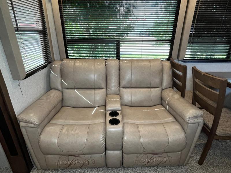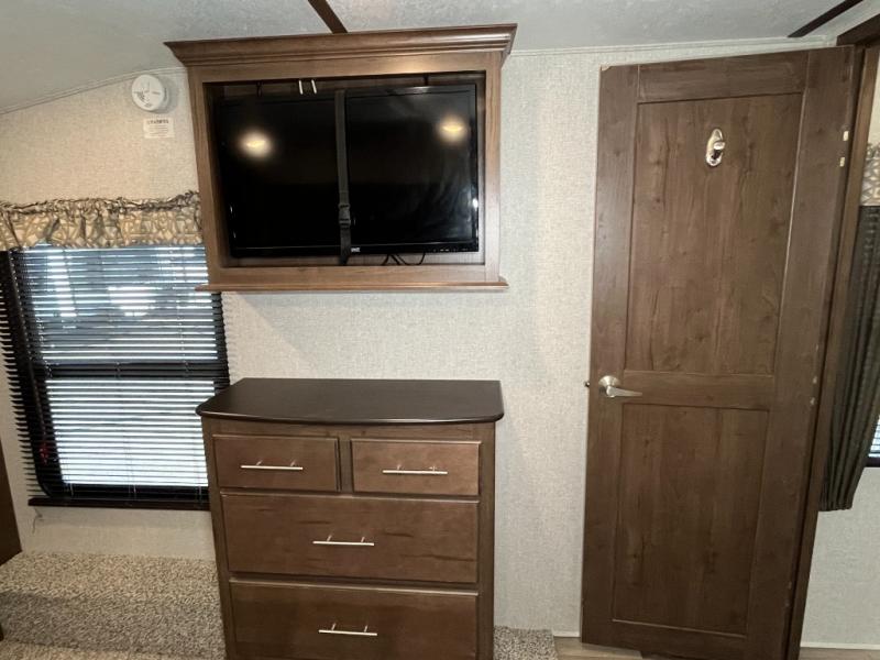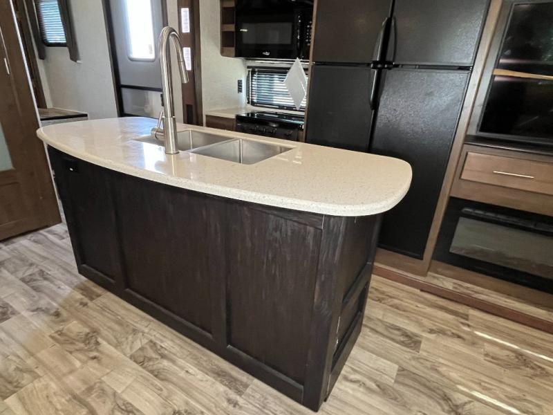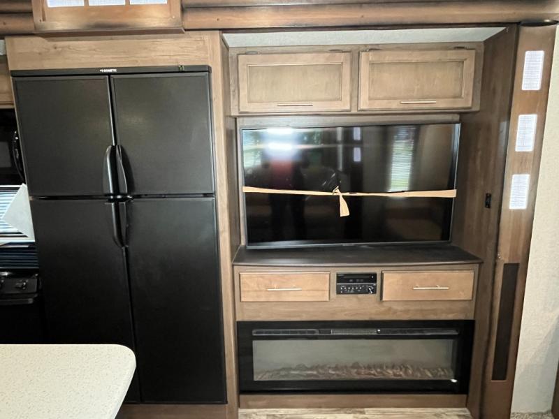 If you are set on relaxing inside but adventuring outside then this Cougar fifth wheel 310RLS has you covered. From the tri-fold sleeper sofa, theater seating, and dinette there is plenty of room for relaxation, eating, and visiting. The dual opposing slide outs in the combined living and kitchen area plus the single slide in the bedroom provide more interior floor space to move about. The cook will appreciate the kitchen island and large pantry, and the warmth of the fireplace near by. Outside, the awning offers shade from the sun, and the unobstructed pass-through storage makes loading and unloading your larger outdoor gear a breeze. Take a look, you will be pleased you did!