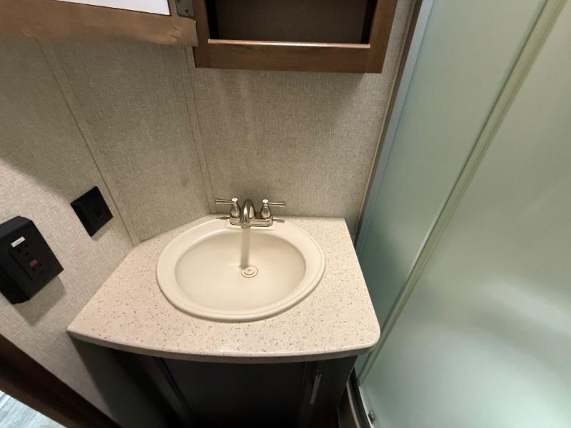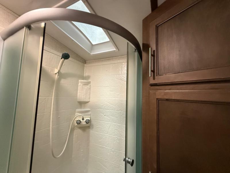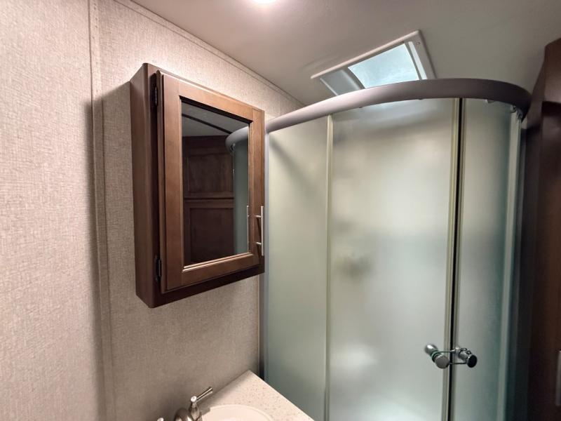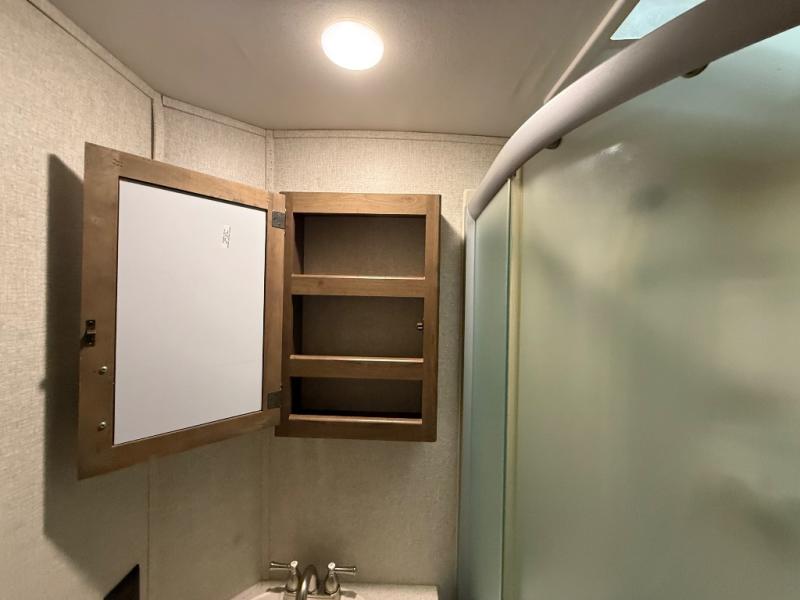 The kitchen area is surprisingly functional, with good counter space for meal prep and plenty of storage for snacks, cookware, and maybe even a secret stash of treats. The dining spot feels like a cozy cafe table where you can enjoy your morning coffee or spread out a board game on a rainy afternoon. When it’s time to turn in for the night, the master bedroom offers a comfy place to rest and recharge, complete with smart storage so you can keep your space tidy even on the road. The bathroom is practical and easy to use, rounding out a floorplan that’s perfect for weekend escapes or longer journeys.
