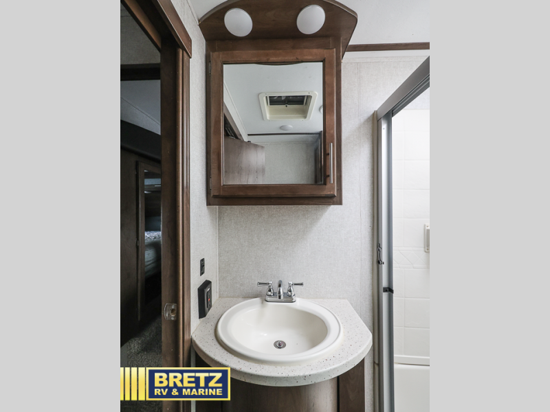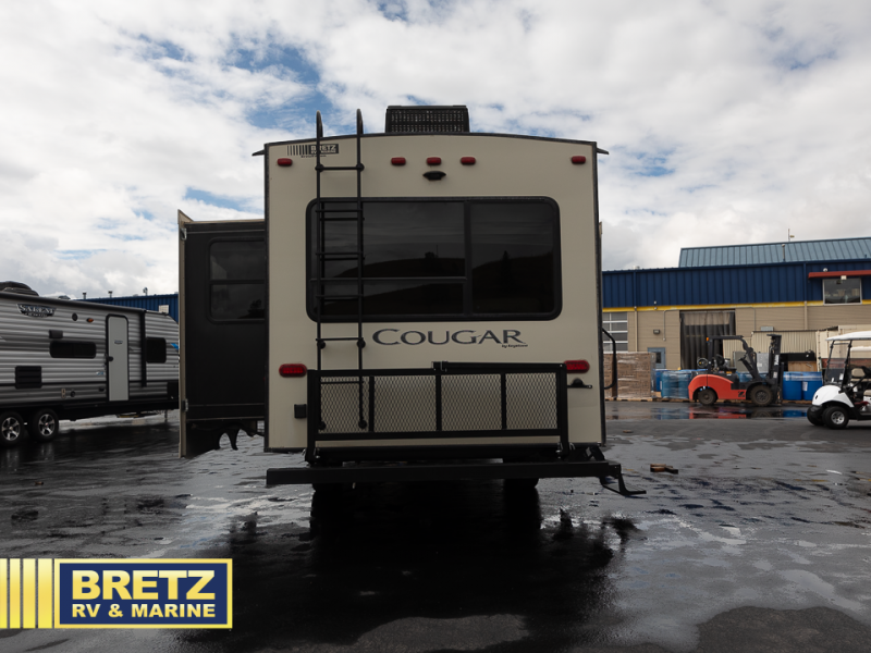 With any Keystone Cougar Half-Ton Series fifth wheel you will be able to camp in any weather with the forced-air heated and enclosed underbelly with enclosed dump valves and astorfoil insulated slide floor. If you need to stay cool or warm, these units have you covered. You can even take your bikes and additional totes along with the 225 lb. capacity folding exterior bike/storage rack. Inside you are sure to love the foil wrap seamless galley and lavatory countertops. The master bedroom offers a queen bed in each model for more sleeping space for the owners. There are many more features you will want on your next fifth wheel, come get your favorite Cougar Half-Ton Series model today.