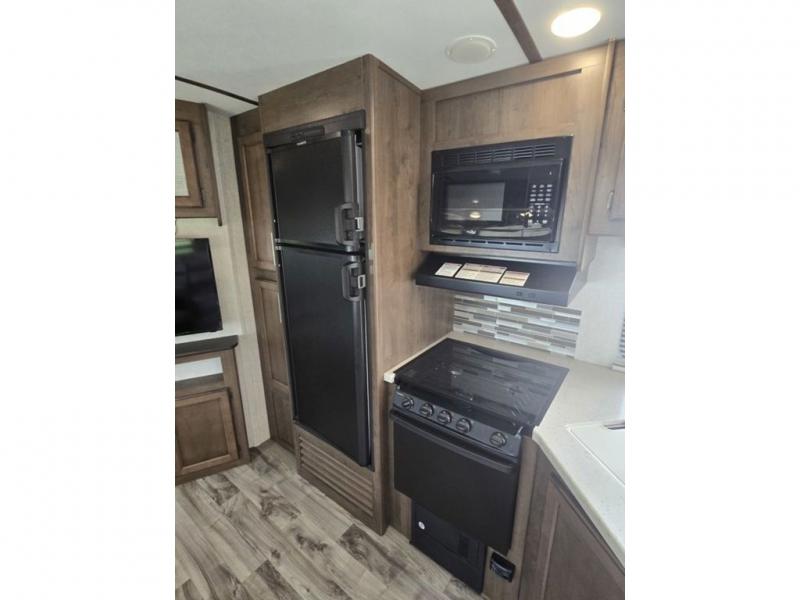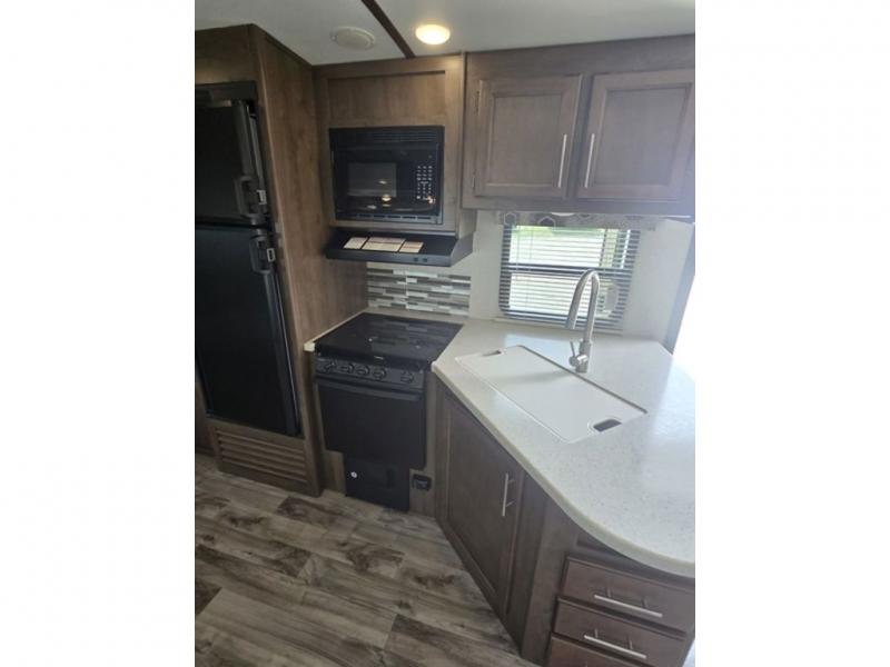 With any Keystone Cougar Half-Ton Series travel trailer you will be able to camp in any weather with the forced-air heated and enclosed underbelly with enclosed dump valves and astorfoil insulated slide floor. If you need to stay cool or warm, these trailers have you covered. You can even take your bikes and additional totes along with the 225 lb. capacity folding exterior bike/storage rack. Inside you are sure to enjoy the gourmet stainless steel under mount sink with the upgraded chef's faucet with sprayer when cleaning your fruits and vegetables or washing the dishes. The master bedroom offers a king bed in each model for more sleeping space for the owners. There are many more features you will want on your next travel trailer, come get your favorite Cougar Half-Ton Series model today.