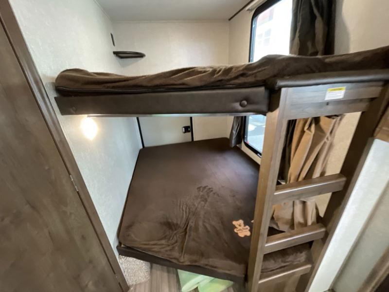 This Keystone Cougar Half-Ton Series travel trailer model 29BHSWE is ready to be hitched up and pulled to your favorite destination! Before entering you will find a capital grill and mini refrigerator outside providing an extra space to make your dinner and store your drinks. The Ground Control and power jack will come in handy when setting up at your favorite spot. You have the convenient choice of entering the trailer through one of the two entry doors, the living/kitchen entrance or the rear bathroom entry. The set of double size bunk beds in the rear provides sleeping space for 4 allowing the kids to invite friends to sleep over. There is plenty of exterior compartments and interior storage throughout including a large wardrobe/pantry in the kitchen and living area. You will find many more "must have" inside and outside features for your next trip.