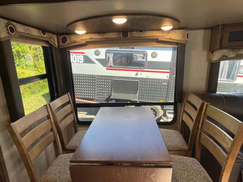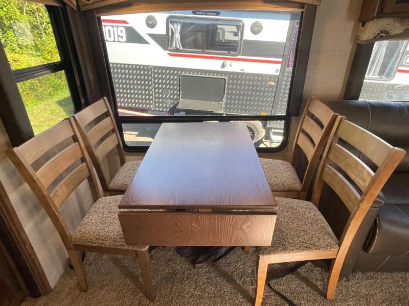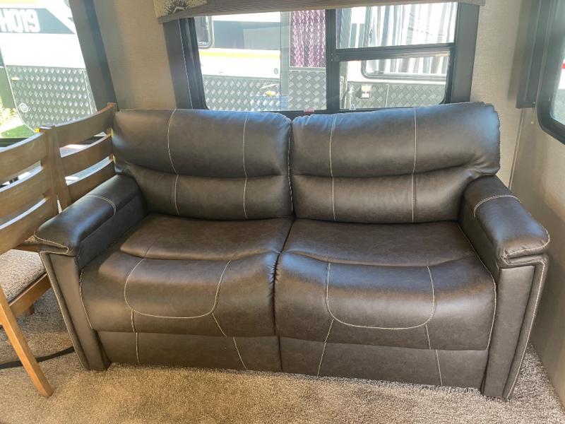 Enjoy the extra floor space provided with the slide out tri-fold sleeper sofa and booth dinette. Both provide overhead storage and can accommodate guests for sleeping when needed. In place of the dinette you can choose an optional free-standing table with chairs.