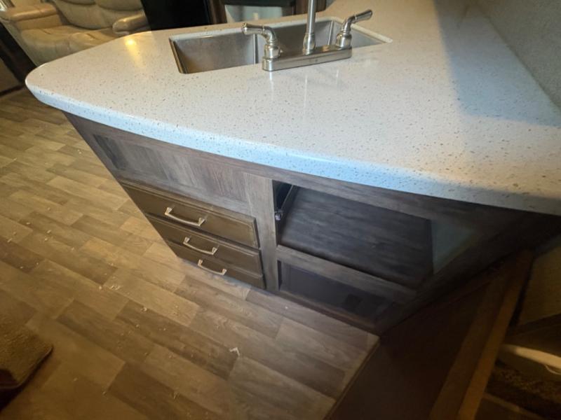 Three slide outs are responsible for giving this Cougar X-Lite rear living fifth wheel by Keystone RV its spacious feel. With dual opposing slides in the living area alone, it will feel a little like home when you first step in.