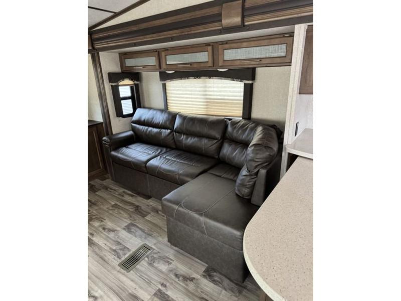 This Keystone Cougar X-Lite fifth wheel model 29RES offers a rear entertaining layout, triple slide for added interior space, and all the amenities you need to enjoy spending time with family and friends, plus more!