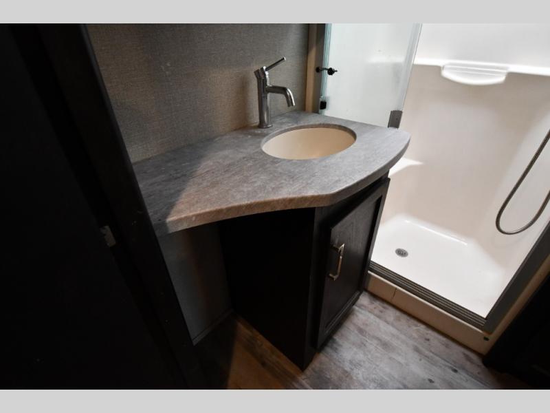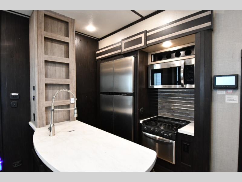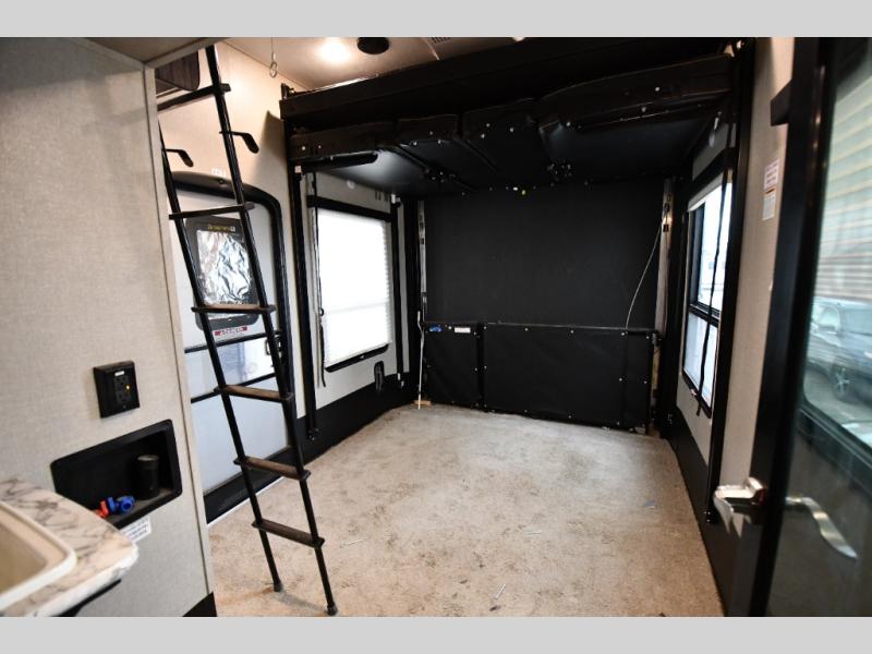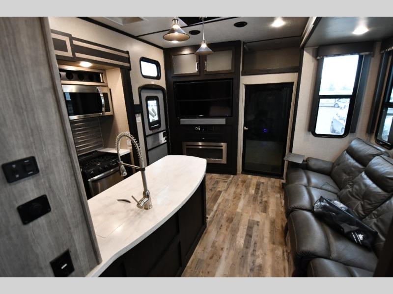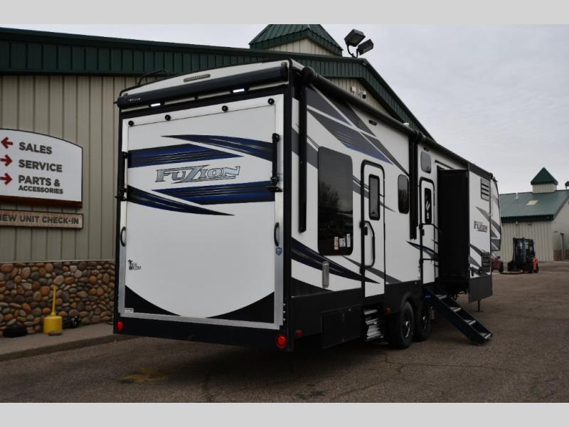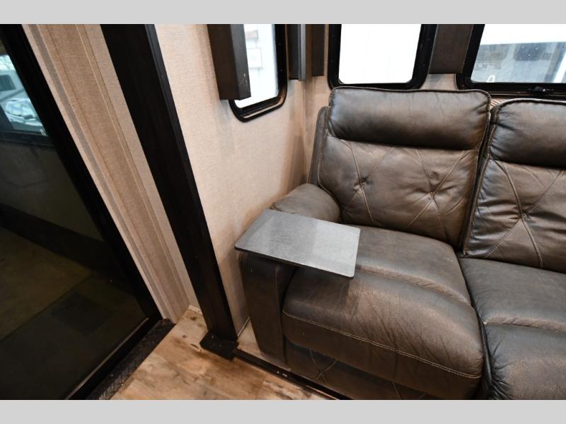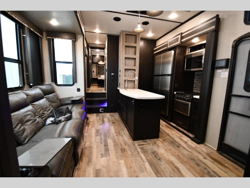 Fuzion toy hauler fifth wheels are "More than a Garage." They give you a place to store your toys while you are traveling yet give you the comforts of home. All of the countertops are solid surfaces, so cleanup is a breeze and all the storage in these units are solid cherry hardwood. The things that set Fuzion apart is the 5K Interlock System that they have created. This system is the toughest tie-down around! Each tie is welded into the metal which makes each tie down virtually unbreakable and can hold up to 5,000 lbs. Along with the tie-down system, you also have Dexter EZ Lube Axles which allow grease to flow to both inner and outer bearings easily. The In-Command RV automation and control system is something you don’t want to miss out on. This system controls all the lights, the 6pt Hydraulic Level-Up System, the awning, plus so much more all within an app on your phone. You don't need to settle, choose the "Hottest Brand in the Industry."