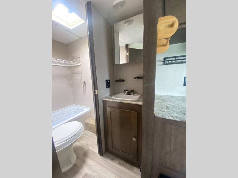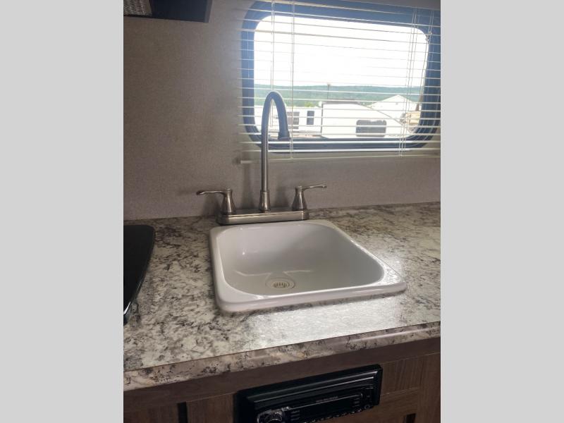 When you own a Keystone Hideout travel trailer, you own an RV that has all of the right features at the right price. The oversized pass-through storage is a truly wonderful amenity because it gives you room to bring along all of your larger luggage items that normally don't fit into your packing plans, like a set of golf clubs or hunting rifles, and you will thoroughly enjoy taking advantage of the interior surround sound speakers as you watch an action-packed movie or listen to your favorite jazz tunes. The more time that you spend in your Hideout travel trailer, the more you will appreciate the 20,000 BTU furnace that has been included to help you keep the interior at the perfect temperature no matter what climate you've traveled to.