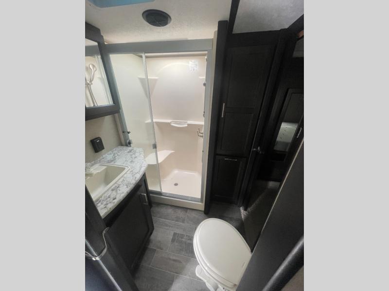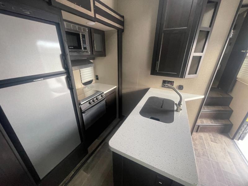 These Impact fifth wheel and travel trailer toy haulers by Keystone keep you in mind as they construct and build each and every unit. From the fast track patio system 2.0 to the 8 cu. ft. refrigerator everything is in your best interest. The patio system does not have the rails attached to the ramp making the door 60lbs lighter so you won’t put your back out loading and unloading your toys.The refrigerator is versatile in space and has a climate control system with easy to read electronic controls that help you to save energy and prevents condensation. All the units also have frameless windows that are two fold, they keep everything dry during all types of weather, and they just look better than other windows with frames. Not only do you have frameless windows protecting the inside, and the exterior is also protected by a high end finish that is called a gel coat. Come check out the Impact toy haulers today!