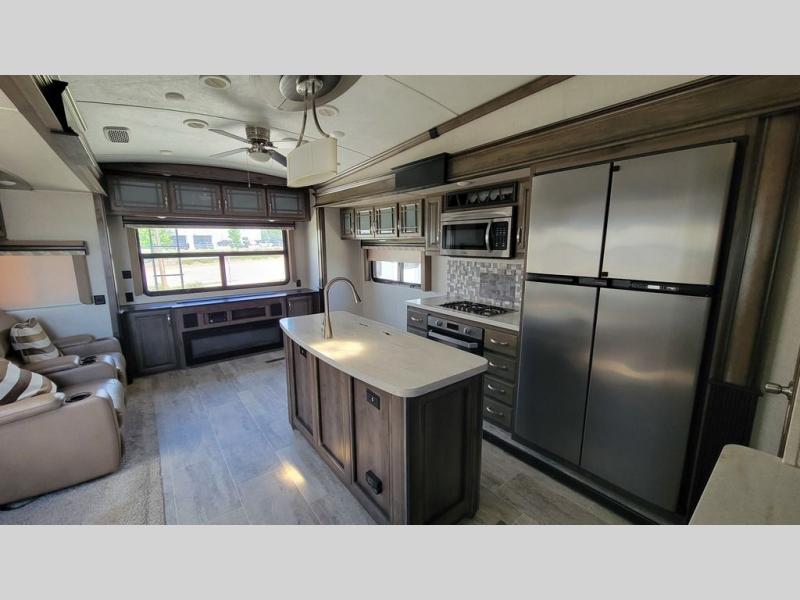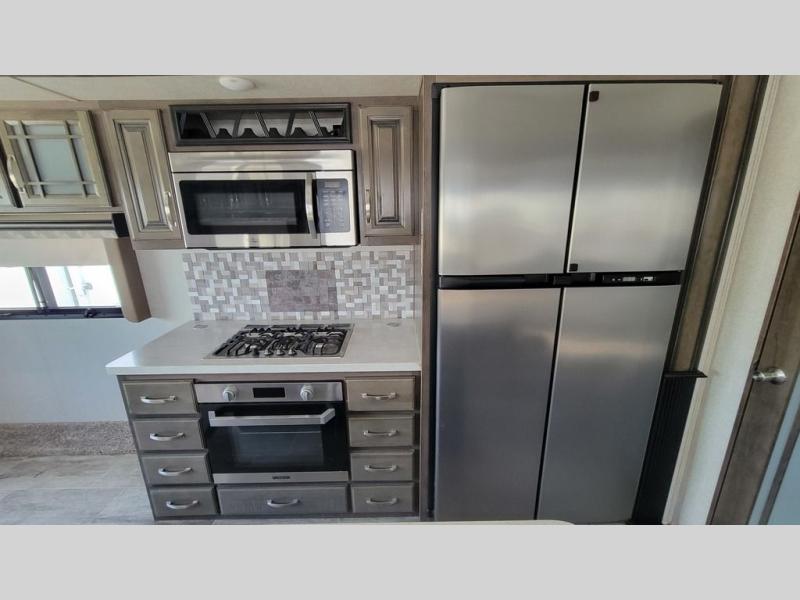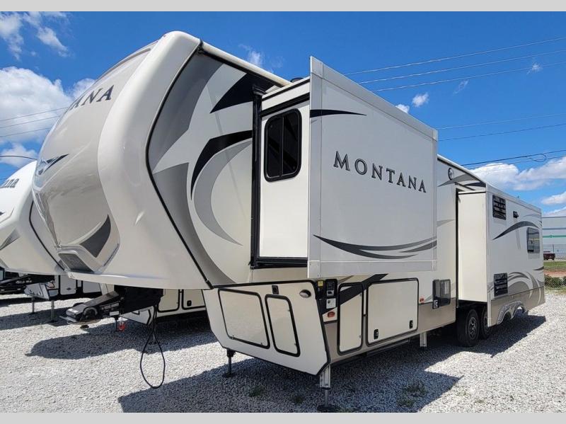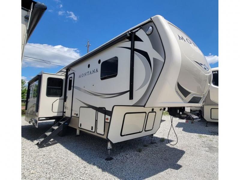 When packing for your next trip in a Keystone Montana luxury fifth wheel you will appreciate the enormous drop frame pass-through storage compartment, MORyde "Step Above" entry steps with strut, and flush mounted LED interior lights to name a few features. Inside you will find an iRelax high density mattress for a good night's sleep, plus a Furrion RV Chef collection oven with auto-ignite and a convection/microwave oven for making your favorite meals. It's time to find the luxury fifth wheel you can enjoy for years to come, choose a Montana by Keystone today!