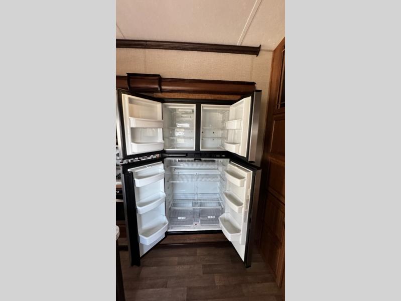 Outside you will find an outdoor kitchen with a two burner cook top drawer, and a refrigerator. There is also an outdoor entertainment center with a 32" HDTV which will come in handy for your tailgate parties and more!