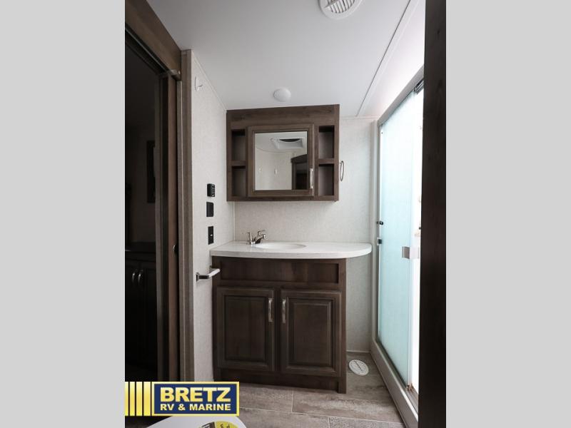 It's time to start planning your next campout vacation with family and friends in this Montana fifth wheel. Model 3720RL offers a wide open living and kitchen area thanks to the dual opposing slide outs. You are sure to enjoy the theatre seats with power recliners and additional furniture when watching the HDTV while keeping warm from the fireplace. The cook can prepare meals and the guests can wash the dishes on the kitchen island. There is an 18 cu. ft. RV refrigerator and convection microwave to mention a few other main features in the kitchen. You also have double entry into the bath as an added convenience. You will find plenty of storage throughout for all your things including an entry wardrobe. When enjoying the outdoors, you can watch the exterior entertainment center with 32" HDTV while sitting under one of the two awnings. Take a look around, this model is the one!