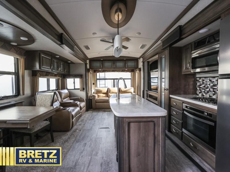 When packing for your next trip in a Keystone Montana luxury fifth wheel you will appreciate the enormous drop frame pass-through storage compartment, MORyde "Step Above" entry steps with strut, and flush mounted LED interior lights to name a few features. Inside you will find an iRelax high density mattress for a good night's sleep, plus a Furrion RV Chef collection oven with auto-ignite and a convection/microwave oven for making your favorite meals. It's time to find the luxury fifth wheel you can enjoy for years to come, choose a Montana by Keystone today!